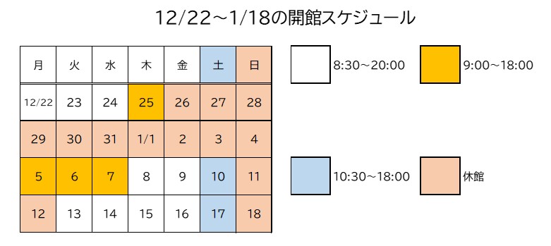 年末年始の中央図書館の開館時間は図のとおりです。