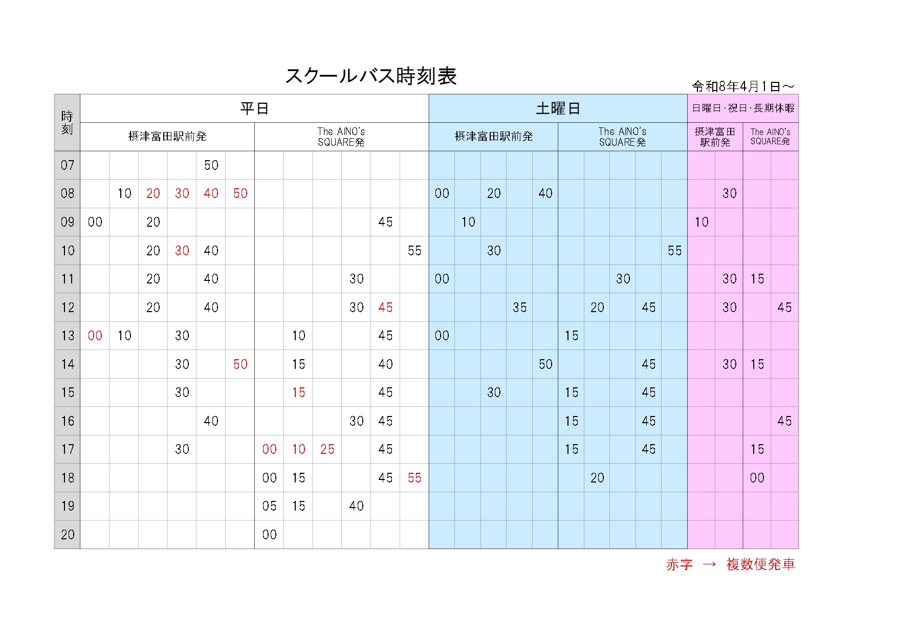 2026年4月1日より、スクールバスの時刻表が下表のとおり変更となります。